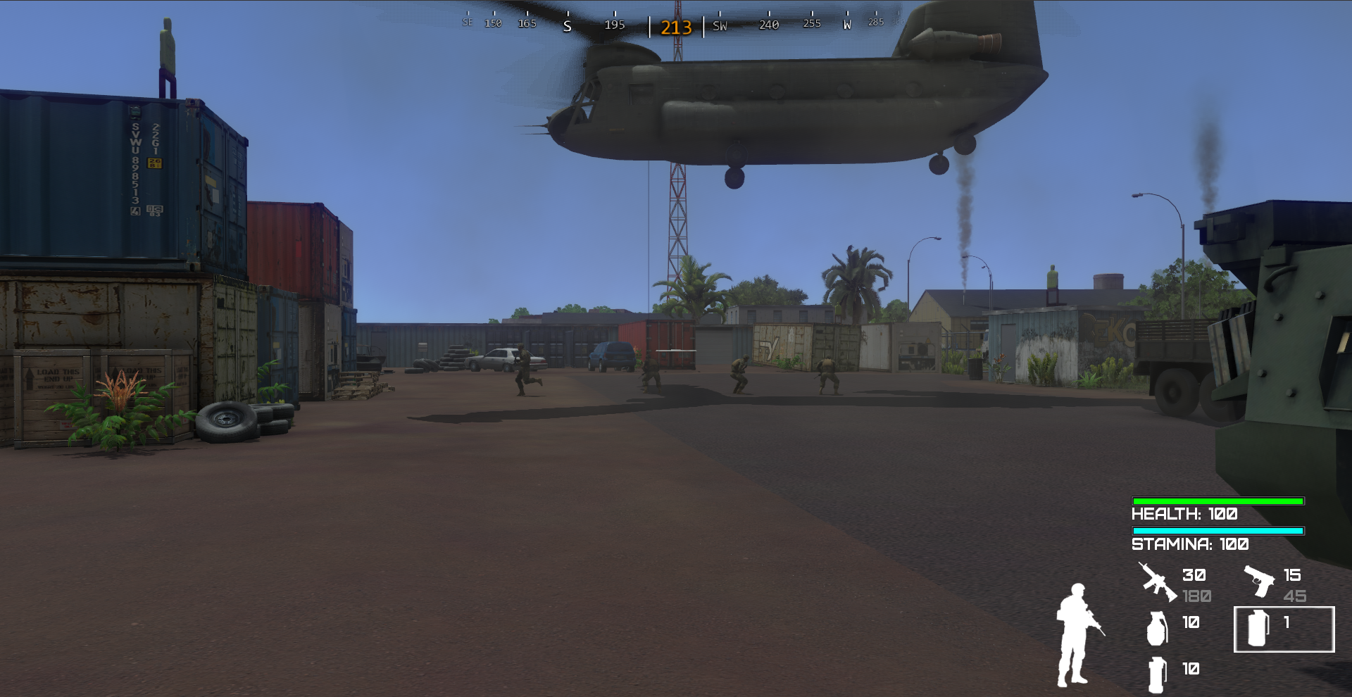 - Individual movement (look, run, walk, crouch, crawl, prone).